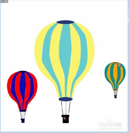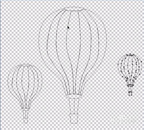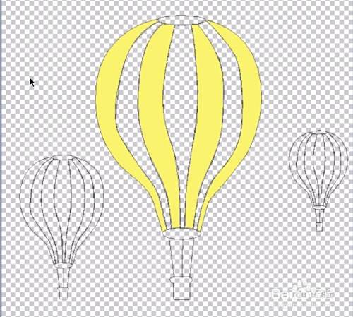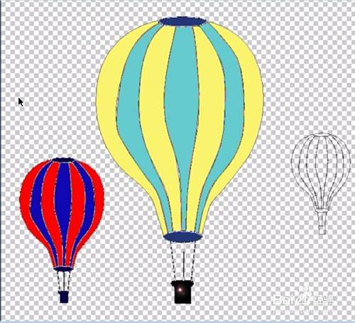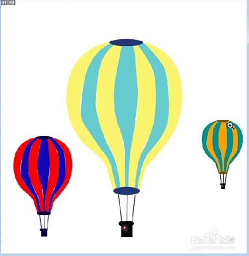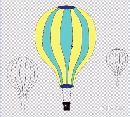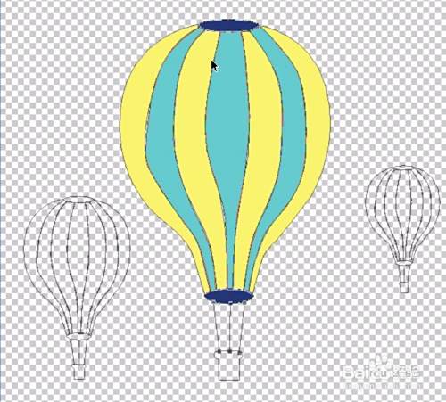 有了一个热气球的基本路径之后,我们可以复制路径从而绘制出其它的两个热气球。让它们一左一右的位于大的热气球的两边。