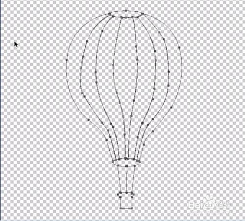 选择钢笔工具,我们绘制出热气球的基本路径,不同的弧度有着不同的色调,热气球的细节也要一一绘制出来,它的下方的小小吊篮也要绘制出来。