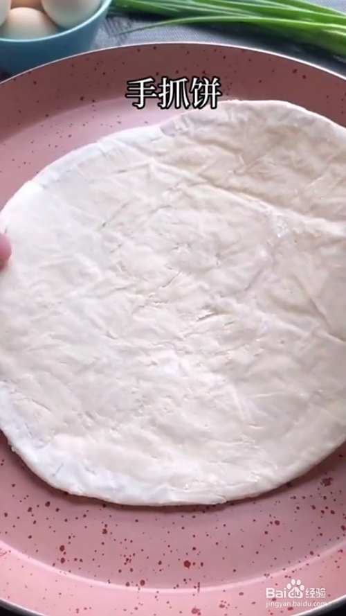 手抓饼一面煎熟后翻面煎另一面,煎至两面熟透即可。