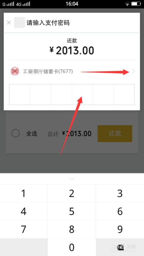选择支付银行卡,并输入支付密码完成还款。
