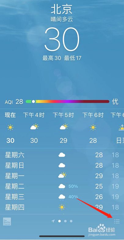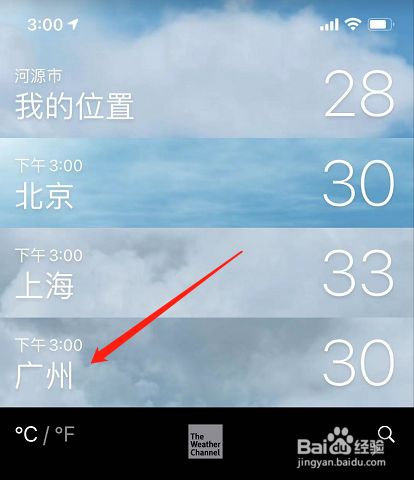 打开手机天气应用,点击三小横,选择广州,即可查看广州未来几天的天气。