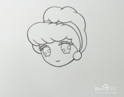接着画出灰姑娘的五官,眼睛要画得很大。