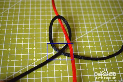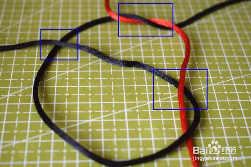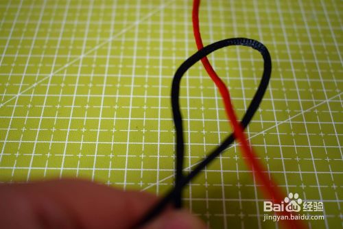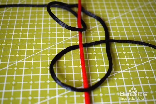 红绳为轴,将黑绳放在红绳下方和红绳垂直。