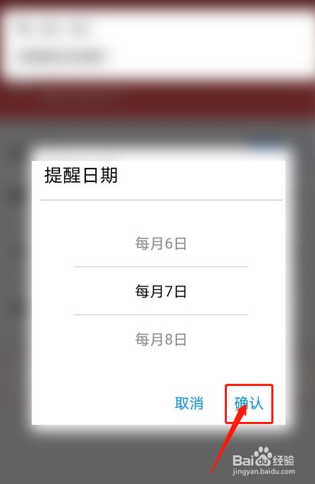 在【信用卡管理】中,点击【提醒日期】,选择【日期】后,点击【确认】。