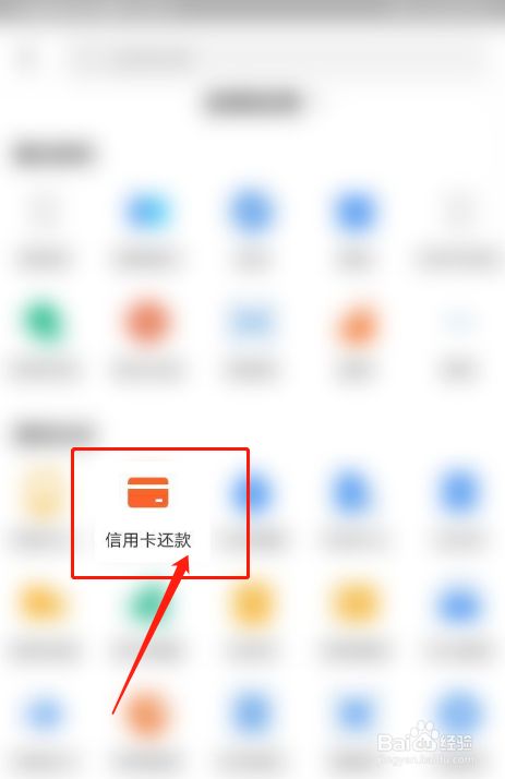 在【全部应用】页面,点击【信用卡还款】栏目,进入【信用卡还款】页面;