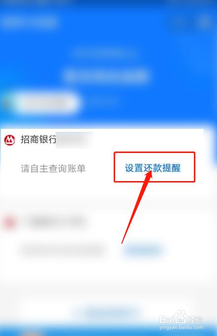 在【信用卡还款】页面,点击【设置还款提醒】按钮,进入【信用卡管理】页面;
