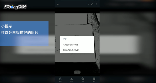 点击已经扫描好的照片,点击右上角的第二个图标即可分享照片。