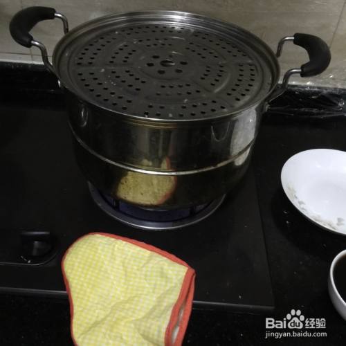 水烧开后继续大火烧着,盘子放上去,盖好,大火3分钟。皮会鼓起来泡。熟了