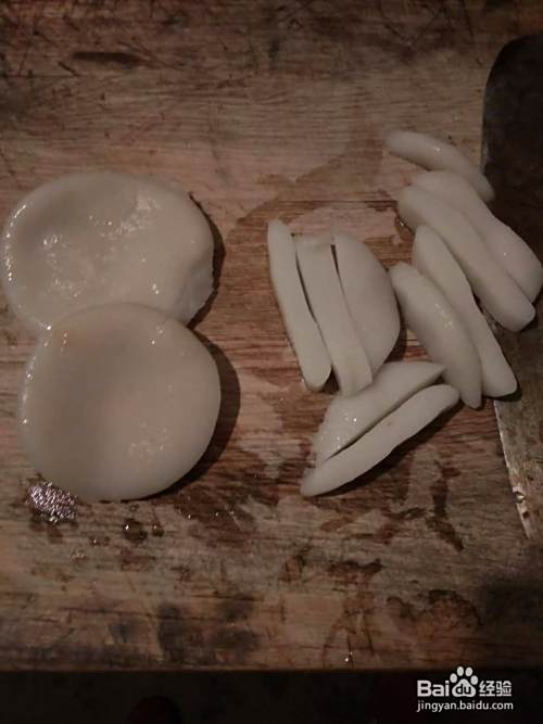准备食材,将米果、青菜分别洗净,切好,待用