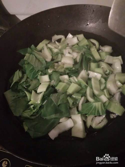 热锅中倒油,将切好的青菜入锅,大火煮沸