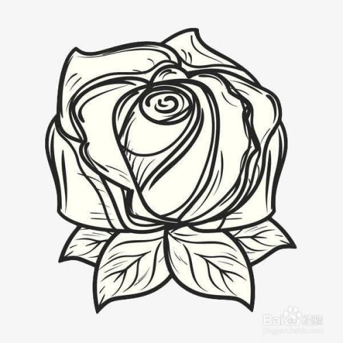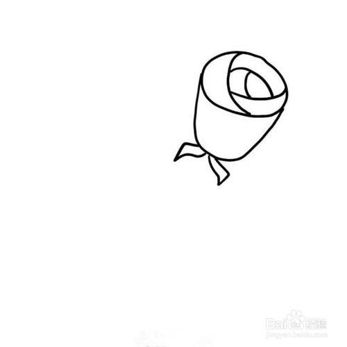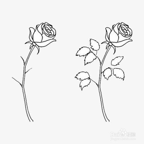 第四步画完了玫瑰花之后,肯定少不了的是给玫瑰花画上花瓣的叶子,花瓣的叶子一般就画在玫瑰花的底下即可。