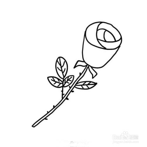 第五步在基础的叶子上,在画出玫瑰花带刺的枝干,然后在单调的枝干上面画上一些叶子,这样才能保证玫瑰花的完整。