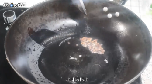 锅内加油,放入花椒,出味后捞出。