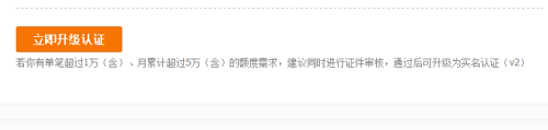 如果您有单笔超过1万、月累计超过5万的需求,那么可以升级认证,升级后将变成实名认证v2,小编没有这需求,所以没有亲身实践,有这种需求的朋友自己升级吧!大家看了流程,想试试的话,就自己操作一下吧!
