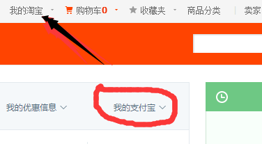 然后,在淘宝网主页上方,找到我的淘宝,点击一下,会出现“我的支付宝”选项,接着点击这个选项。