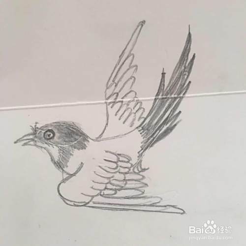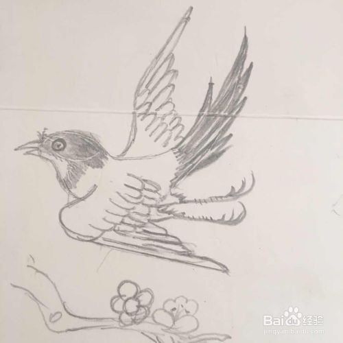第五步 涂色 把喜鹊的头部和尾部 都涂成黑色