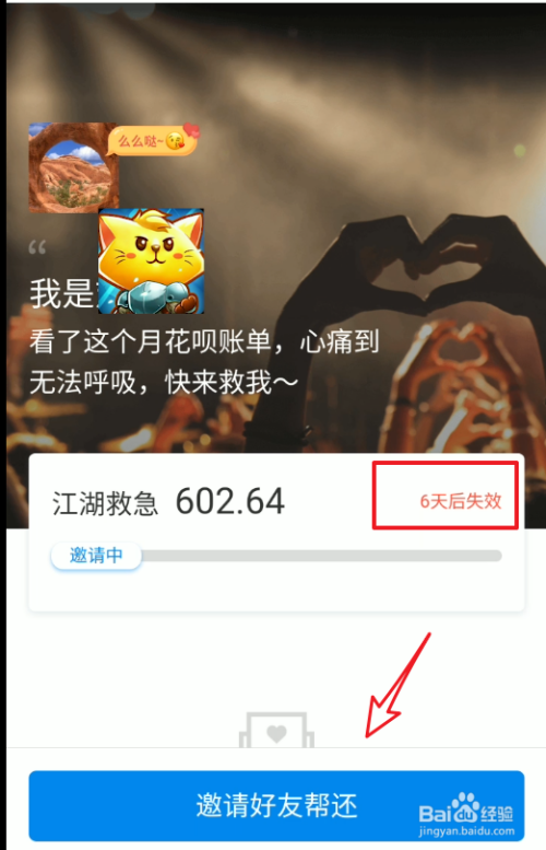需要注意的是这个链接只有六天的有效期,六天之后如果好友及时想帮还也无法帮还了。