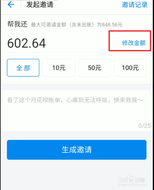 好友帮还功能,我们可以选择全部帮还,或者是只帮还一部分。关系铁的可以选择全部帮还,如果关系一般般的话,我们可以将金额设置的少一点。