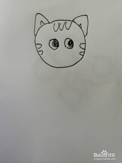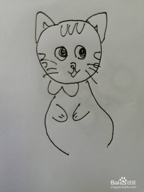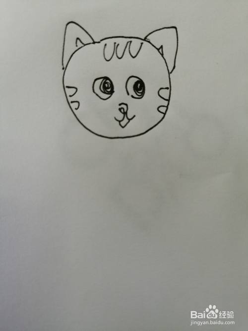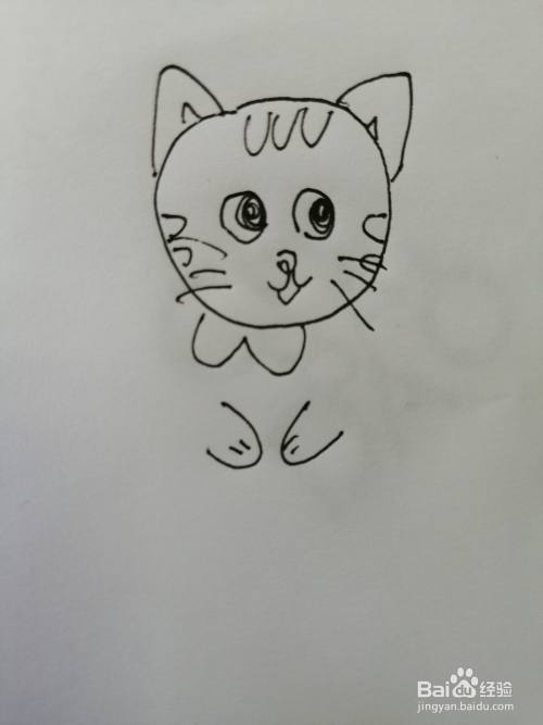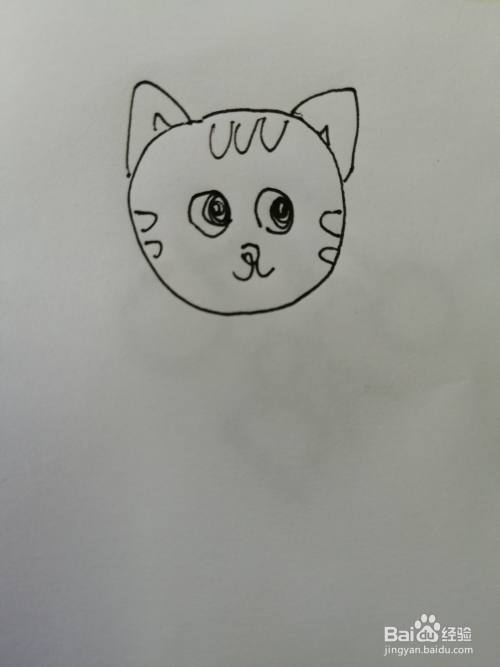 第三步,然后在小猫咪的眼睛下面画出小猫咪的小鼻子和嘴巴,注意细节的画法。