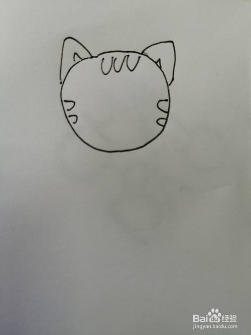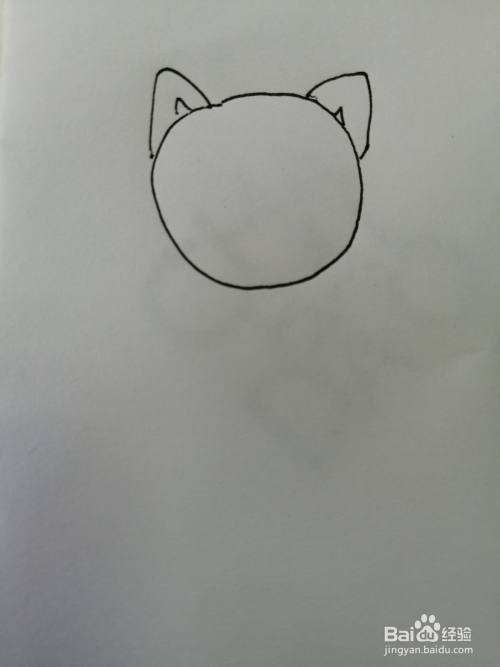 第一步,我们先把可爱的小猫咪的椭圆形的头和头上的两只耳朵画出来,画法比较简单。