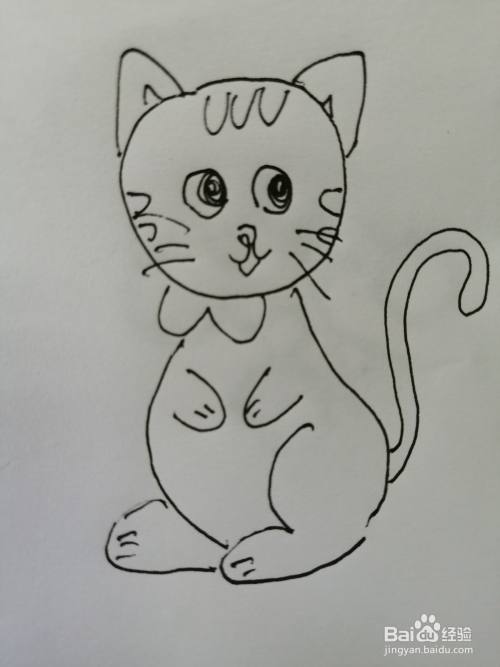 第七步,最后把可爱的小猫的小尾巴画出来,可爱的小猫就画好了。