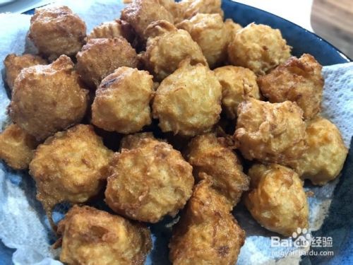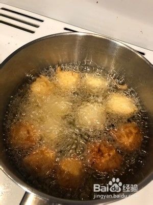 锅中加油,烧至插入筷子边冒小泡,用手挤出丸子用勺子挖了入油锅开始炸丸子