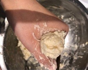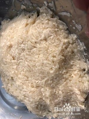 加入少许淀粉和面粉搅拌上劲,成粘稠状