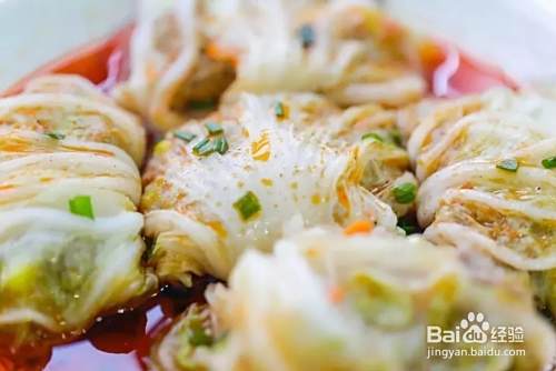 做好的白菜肉卷还冒着热气,红油一淋上,瞬间让人食欲大增。