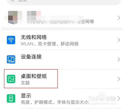 进入设置列表菜单,点击桌面和壁纸选项进入。