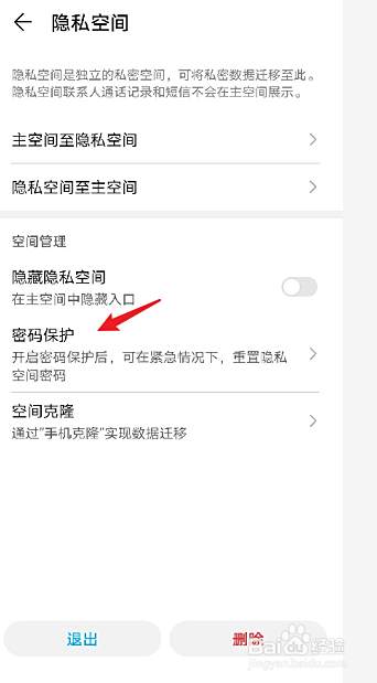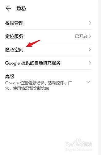 设置完密保问题后,返回主空间打开设置里的【隐私】,再点击【隐私空间】。