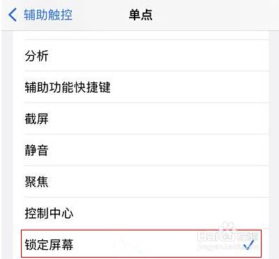 可以通过苹果手机设置功能,在辅助功能页面打开触控,进入辅助触控设置单点为锁定屏幕状态即可。