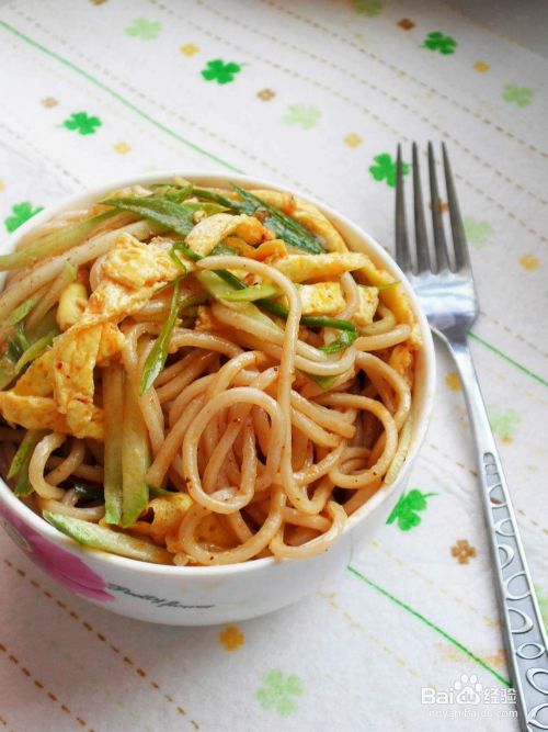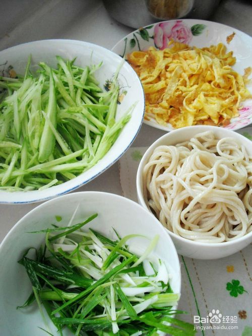 将黄瓜丝,鸡蛋饼,放在面上,伴匀即可食用。