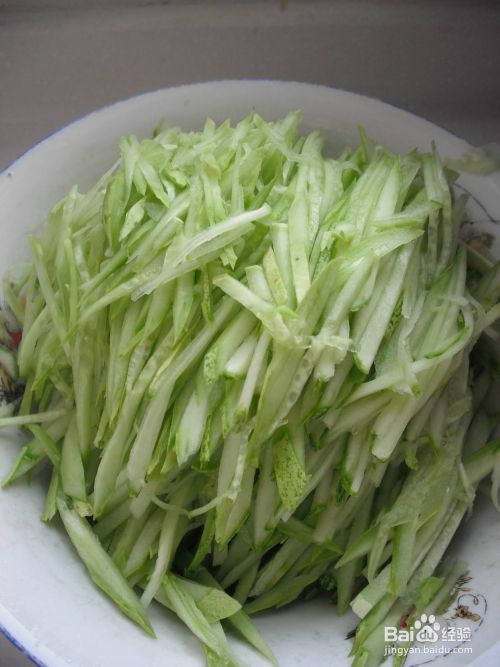 鸡蛋打碎搅匀,倒入锅里成饼状,铲出后切丝。