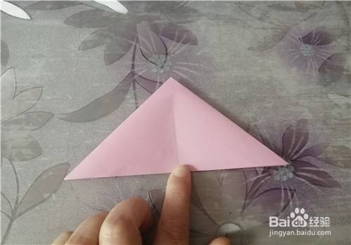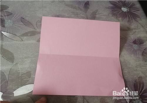 准备好一张正方形的彩纸,推荐使用15*15的。先把彩纸的中线对折,如图。