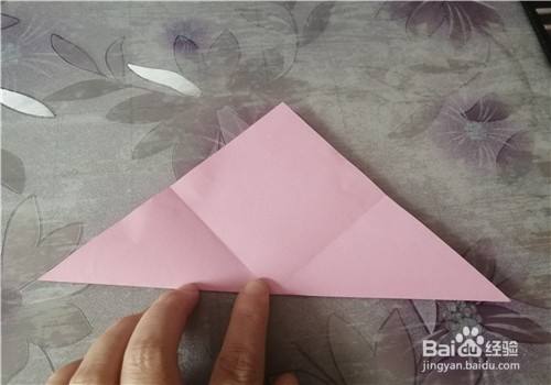 然后再把对角线对折,按照折痕把彩纸折成图二的样子。