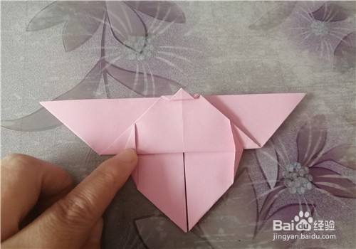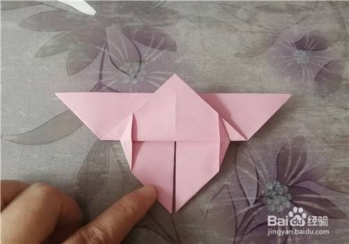 接下来再把两侧的翅膀向下折,折好后就是图二的样子,下面是完成图。