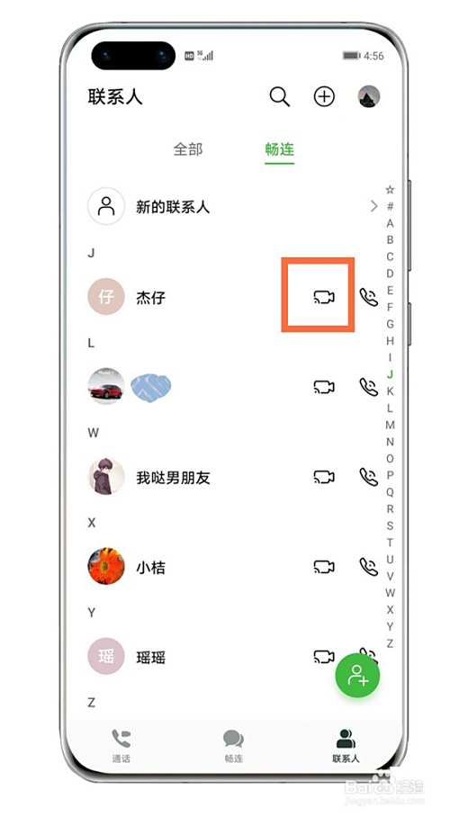 1、打开手机桌面上的畅连app,在联系人界面,选择顶部“畅连”。