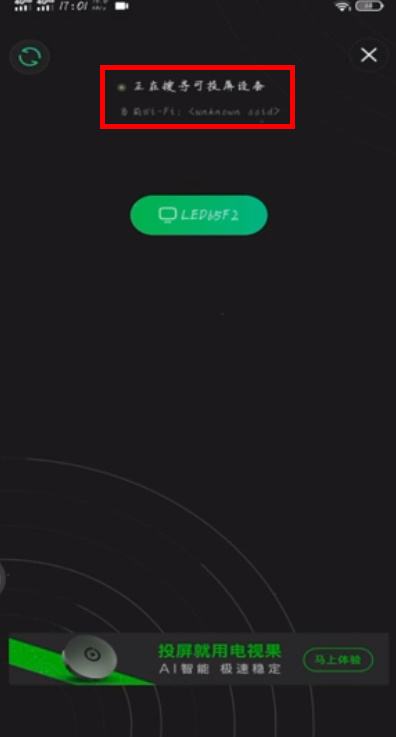 显示正在搜寻可投屏设备。