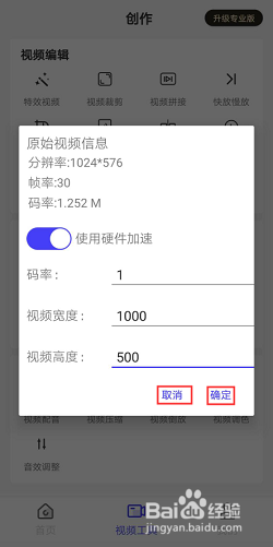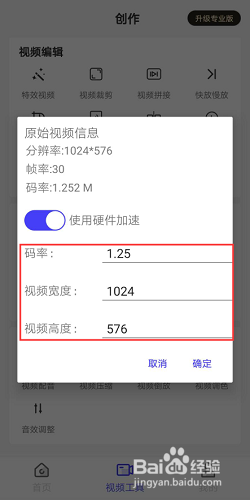 编辑完成后,点击“取消”可取消之前操作,点击“确认”将视频压缩至手机。