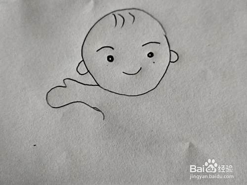现在要画的是一个小男孩,画完后多宝不满意,说这个宝宝不好看,不穿衣服