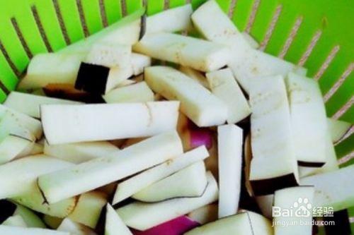 然后将茄子洗净、切条。