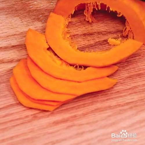 南瓜去皮洗干净,切块。