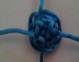 把两根中国绳交叉放好(竖着的是A,横着的是B)