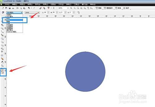 工具栏中选择交互式填充工具,属性栏左上角的位置,我们可以设置渐变类型,比如线性,射线等。