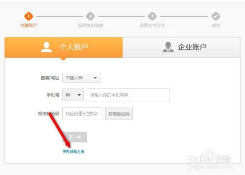 打开支付宝官网,点击注册里面的使用邮箱注册。