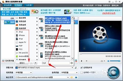 接着是在预置方案处修改输出格式,不作修改的话软件默认为mp4格式,视频音量调整软件提供了上百种音视频格式互转,只要不是太过偏门的格式你都能在此找到,格式面板右边更是贴心的给你列出了比较热门的移动设备支持的格式所属。为方便你快捷的查找到想要的格式你可以在面板的底部搜索框输入格式名字即能转到相应的格式去,点击一下所选格式确认格式选定回到主界面。