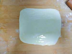 然后重叠起来,后面的依次做好,每两个摞到一起,按压一些,使其充分融合,然后用擀面杖擀一下,成圆饼状,注意别太薄