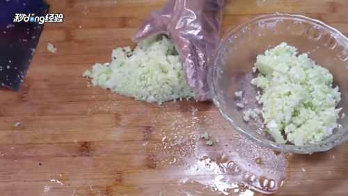 3加入两勺盐,静置十分钟,倒出腌制出来的水分。