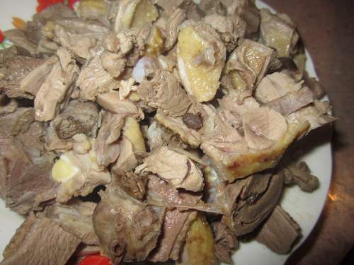 1鸭肉切成小块备用