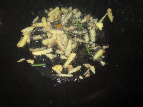 6把姜蒜放进油锅煸出香味